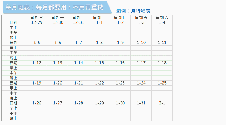 好想將其他企業的厲害檔案直接拿來用,無奈每間公司班制(一班制/兩班制/三班制)、休假制度(週休/月休)、細節規則,以及老闆愛看的格式不同,既有檔案通通不適用!