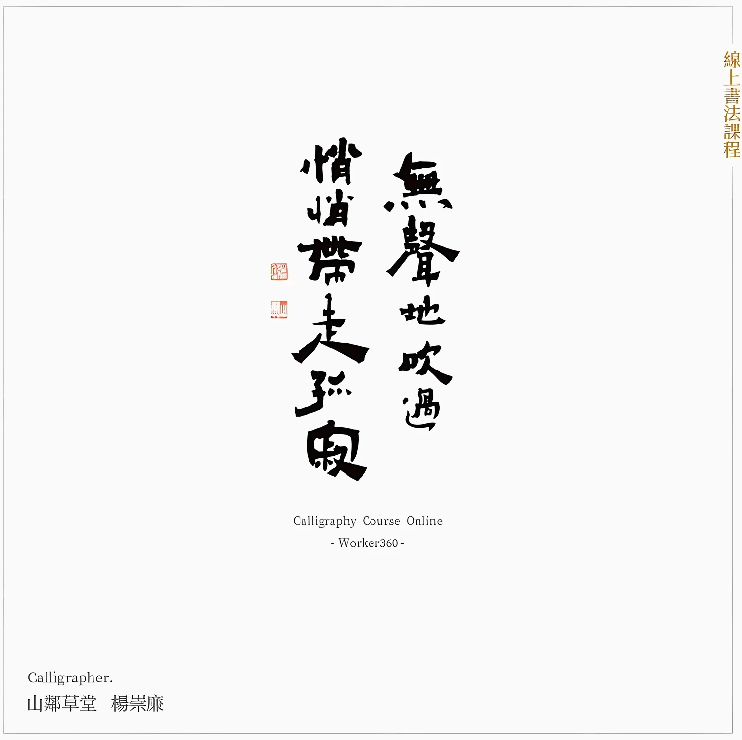 課程最後將介紹現代書法的用途,讓你不止是『寫』一幅書法,更能讓你的書法成為獨一無二的週邊商品,在生活中實際運用。