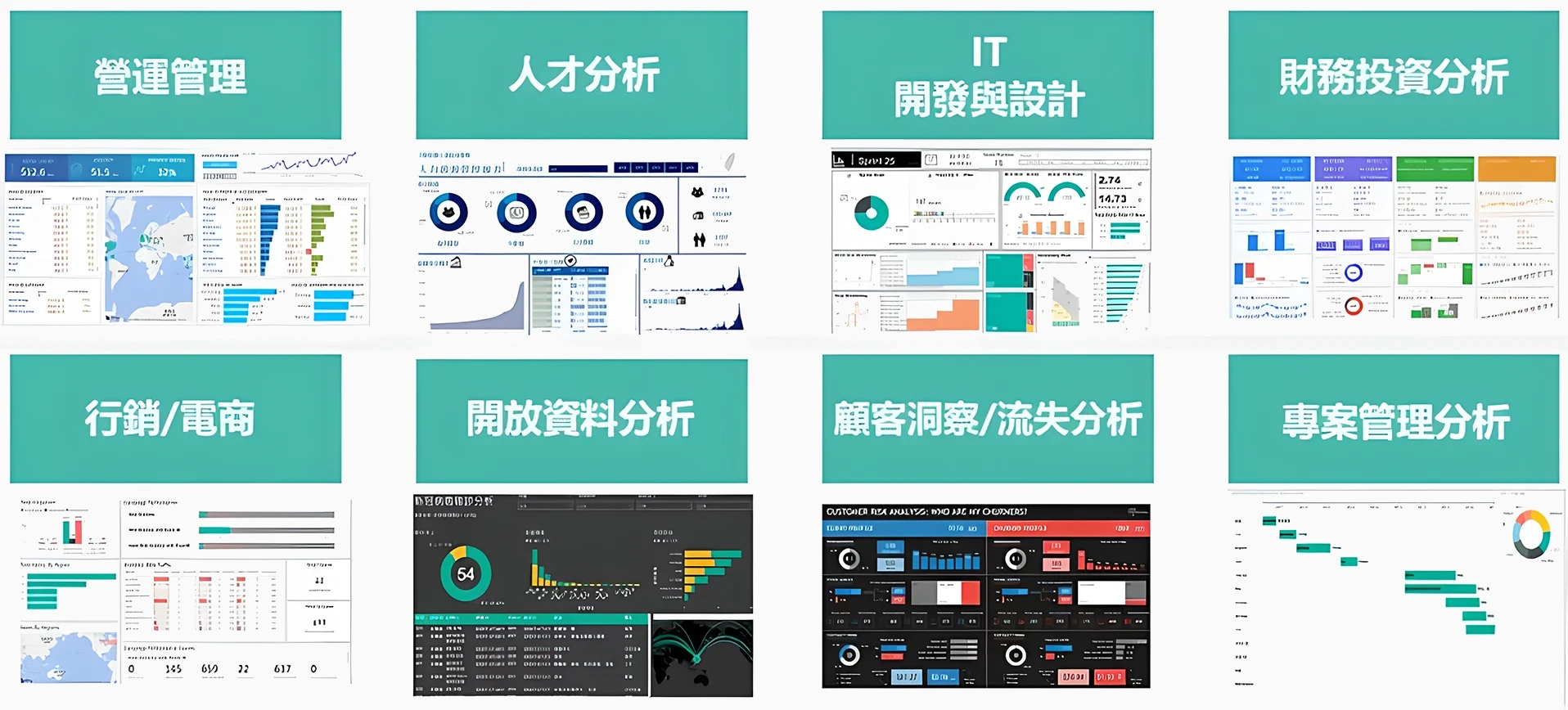 市場調查、競業分析、商業策略、業績報表、員工績效,想做出各種工作報表更 smart 的呈現方式。