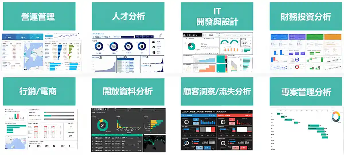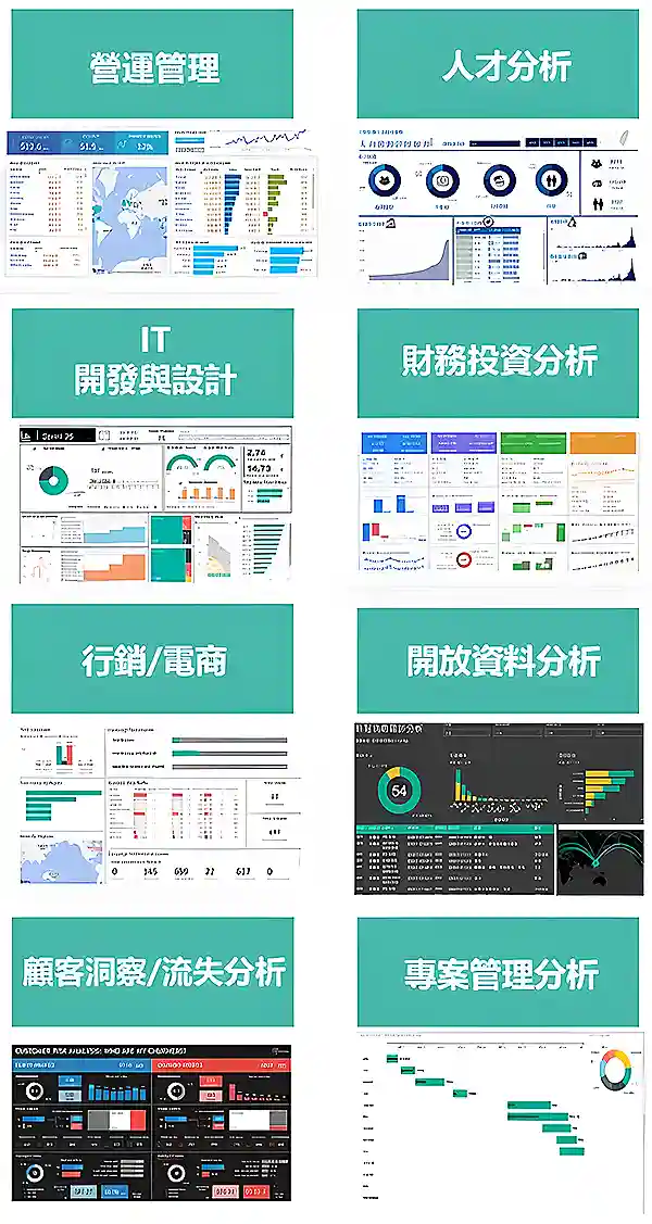 市場調查、競業分析、商業策略、業績報表、員工績效,想做出各種工作報表更 smart 的呈現方式。