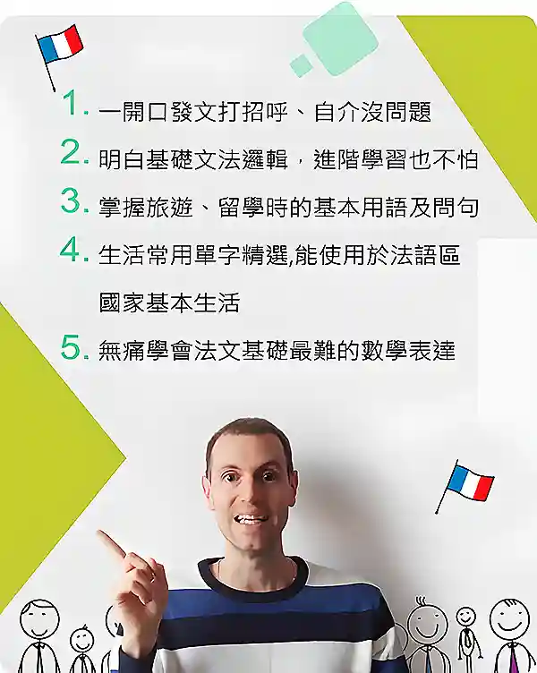 以長年教授台灣學生經驗,規劃出最適合台灣學生的法語課