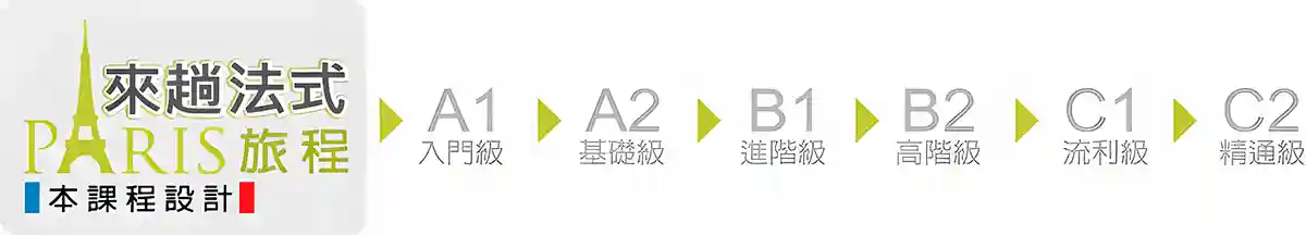 課程強調生活應用、貼近生活、探究文化與對話練習,本課程旨在培養學生對於法文產生興趣,用最淺顯易懂的方式做文法分析。從發音、單字再延伸到情境學習,想像自己正準備前往說法語的國家,出發前準備到抵達目的過程,教師為你準備精彩的實用用語,跳脫傳統的學習模式更快融入當地生活。