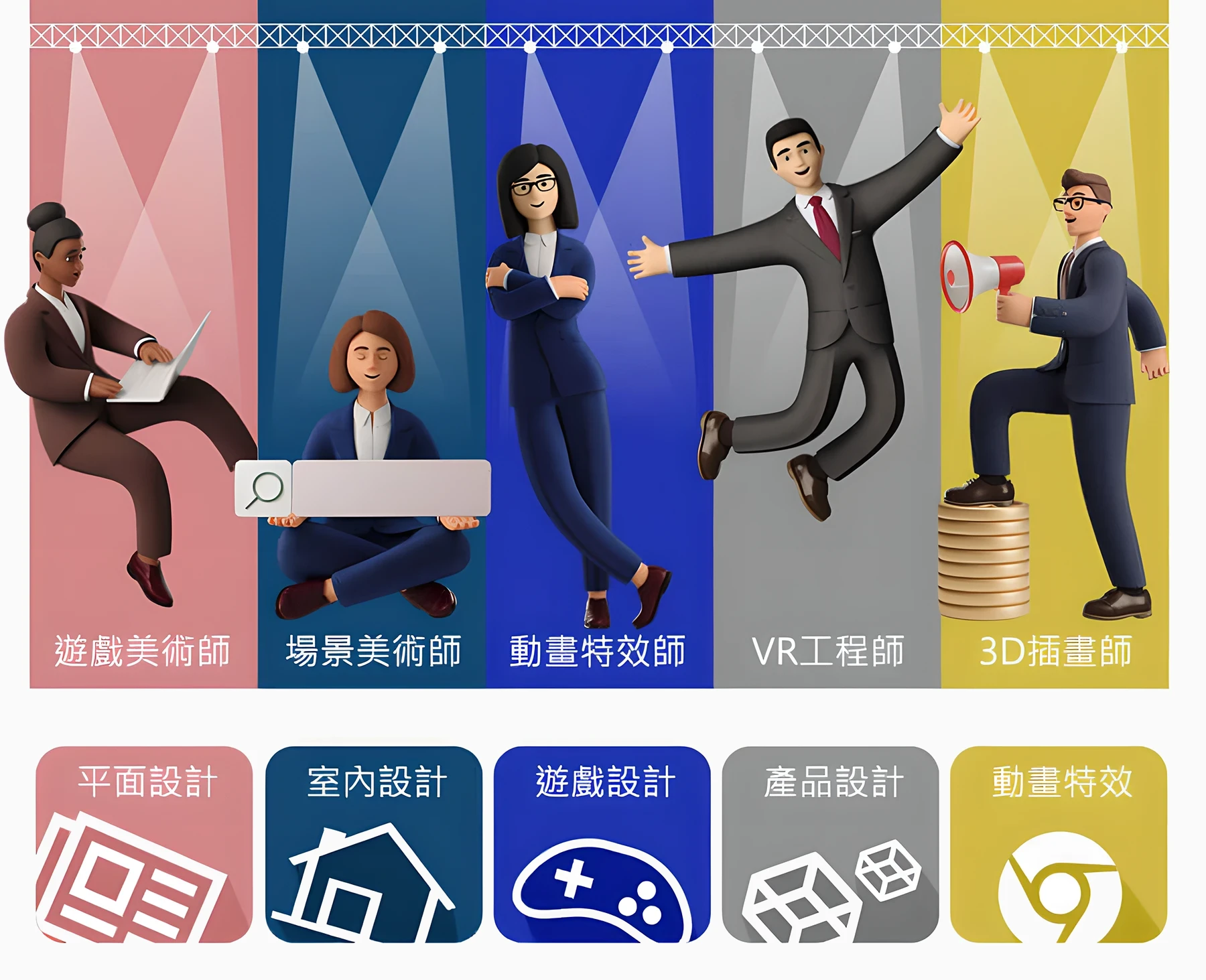 學會3ds Max,可從事3D遊戲美術設計師、3D場景美術設計師、3D動畫師、遊戲企劃設計師、UI介面設計師、遊戲前後台工程師、VR/AR工程師等工作,讓自己職涯更開闊。
