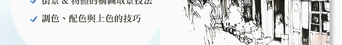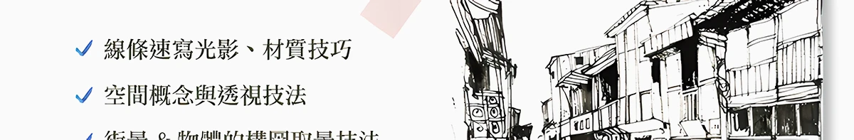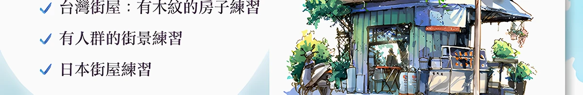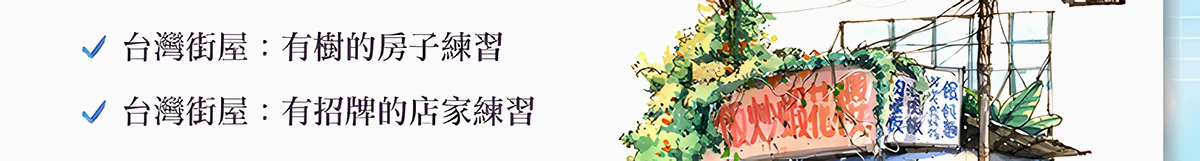 手繪的凝視與記錄,是將「生活」記憶下來最深刻的方式。透過速寫,步行穿梭在台灣大街小巷,用心觀察生活中不同的美, 無論是質樸的紅磚砌牆,還是斑駁的招牌、生機盎然的植物都能成為你筆下的一道風景。