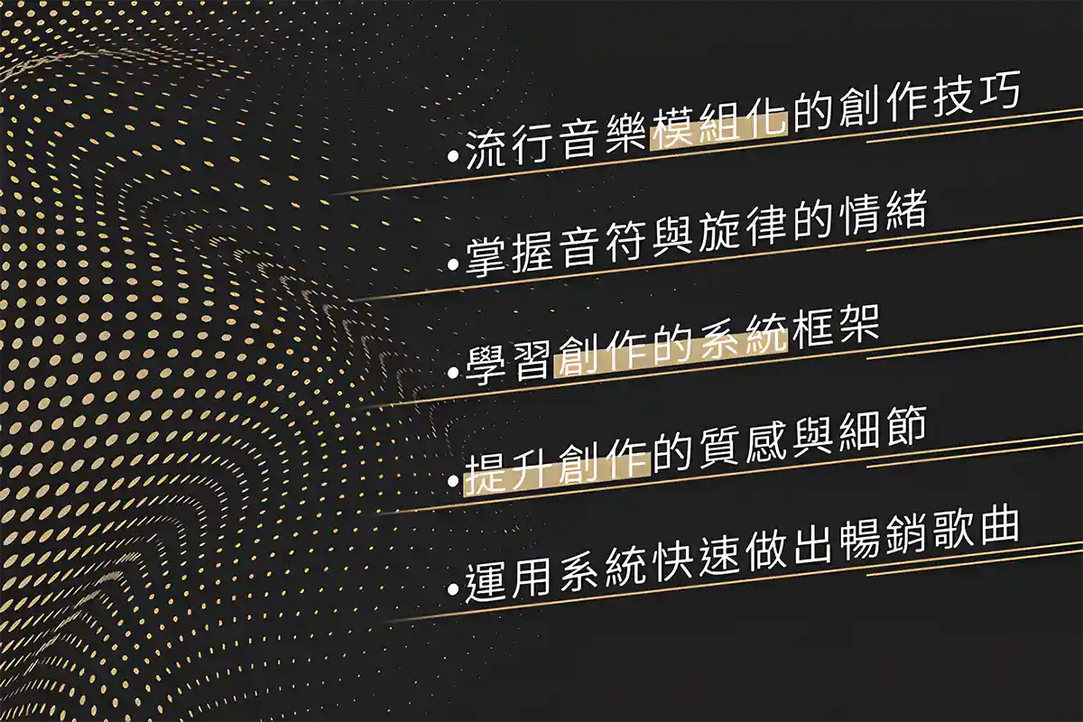 運用旋律或架構的方式提升音樂創作,表達出細緻的音樂性與曲調情緒,更快速掌握流行音樂以及編曲創作的方式,為歌曲潤色升級。