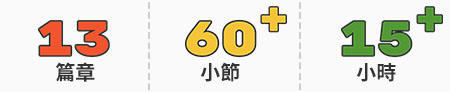 總共規劃 13 章,超過 60 小節,共計 15 小時以上的豪華課程內容,幫助你有系統的整理、有依據的選擇,輕鬆上手網頁設計!