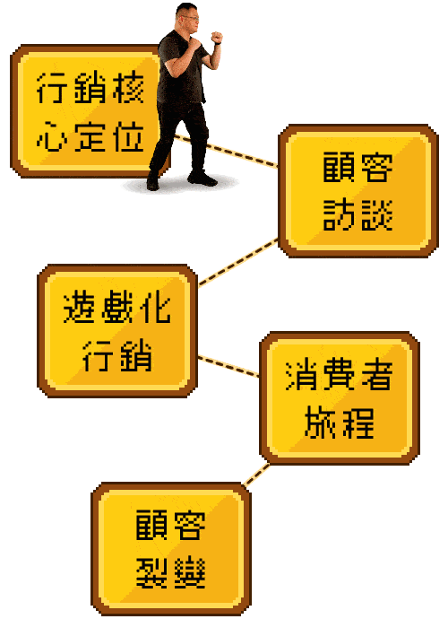 在課程中,我們將從尋找核心定位出發,帶你了解消費者的真心話,並且打造出專屬的消費旅程,並讓你善用誘因增加消費次數與消費金額、同時創造美好的消費體驗。
