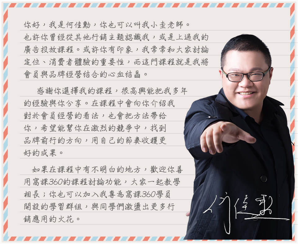 小圭老師在課程中帶你一步一步規劃專屬會員機制,並且找到與會員互動的節奏感。會員經營比的是規劃與執行力,認真做下去,創造長久的良性互動關係。
