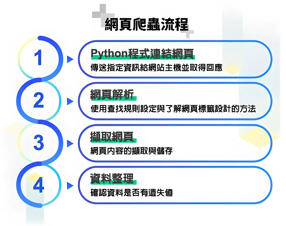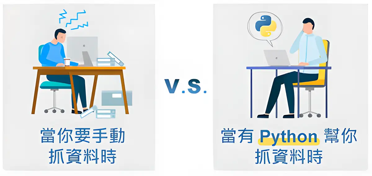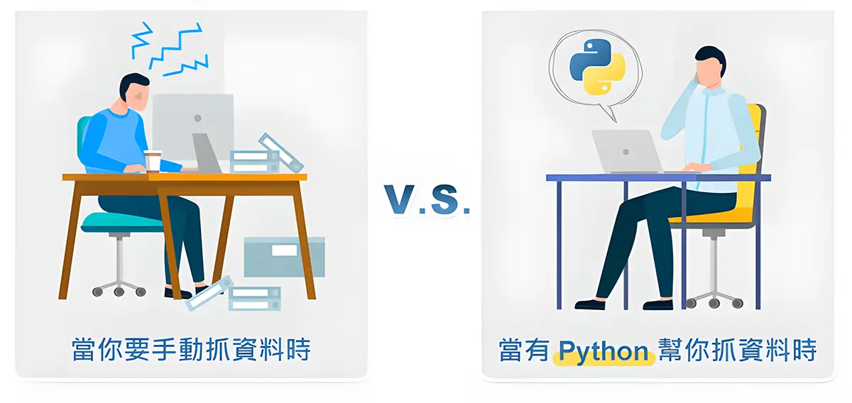 只要設定好爬蟲的規則,Python 就可以依據規則為你抓取網路上你所想要的資料,節省手動在茫茫資料海中爬梳、篩選的時間,輕鬆就能獲得想要的資訊。