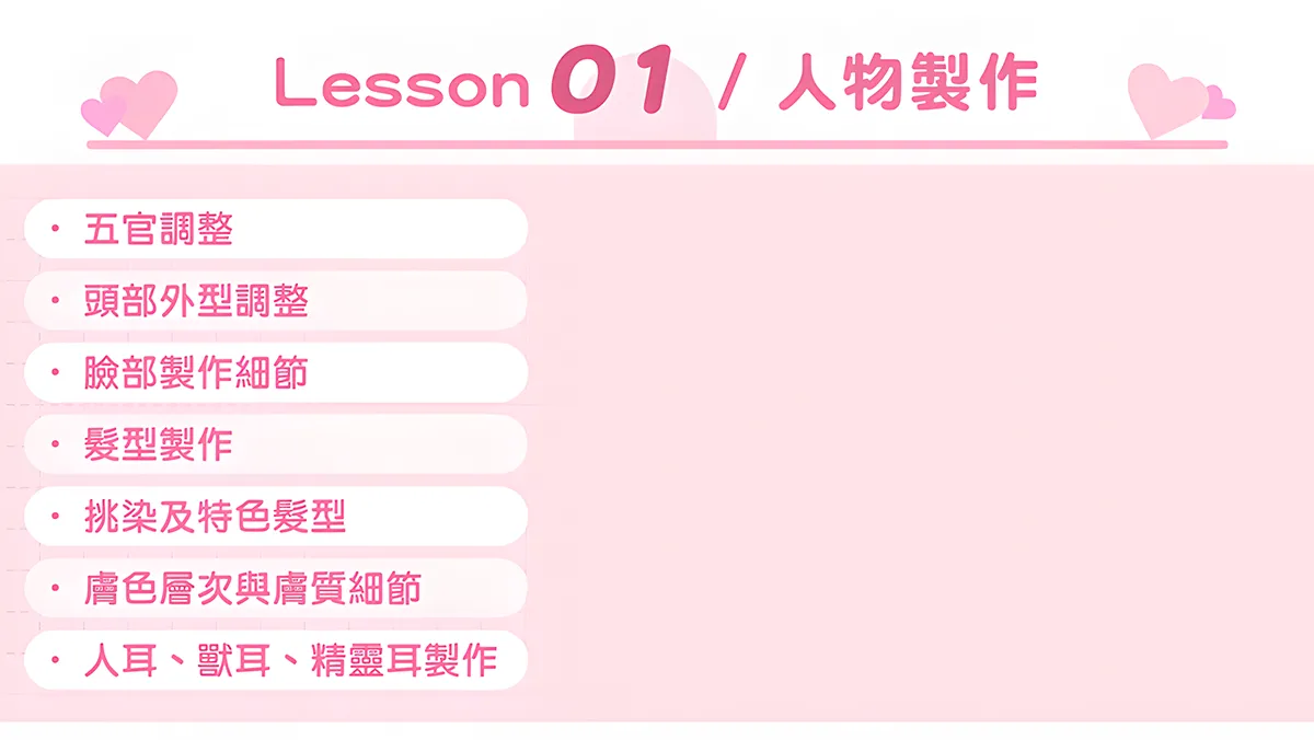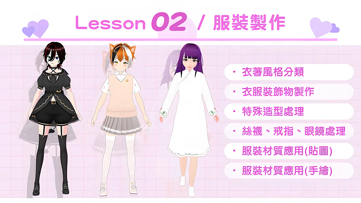 當然可以!關於3D虛擬人物的概念與操作,本課程將循序漸進從頭部、身體、衣服、配件做示範教學,即便從未接觸過3D虛擬人物的同學都能輕鬆上手。