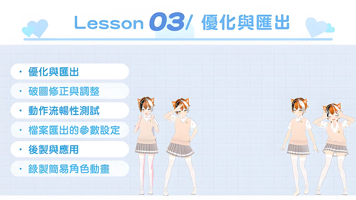 如果你對VRoid已經有一些基礎的認識了,也許你在製作上仍會有一些困擾、或是想擺脫公式感,希望能做出更有自己風格的3D虛擬人物,這門課程可以教你更有效且快速的操作技巧。