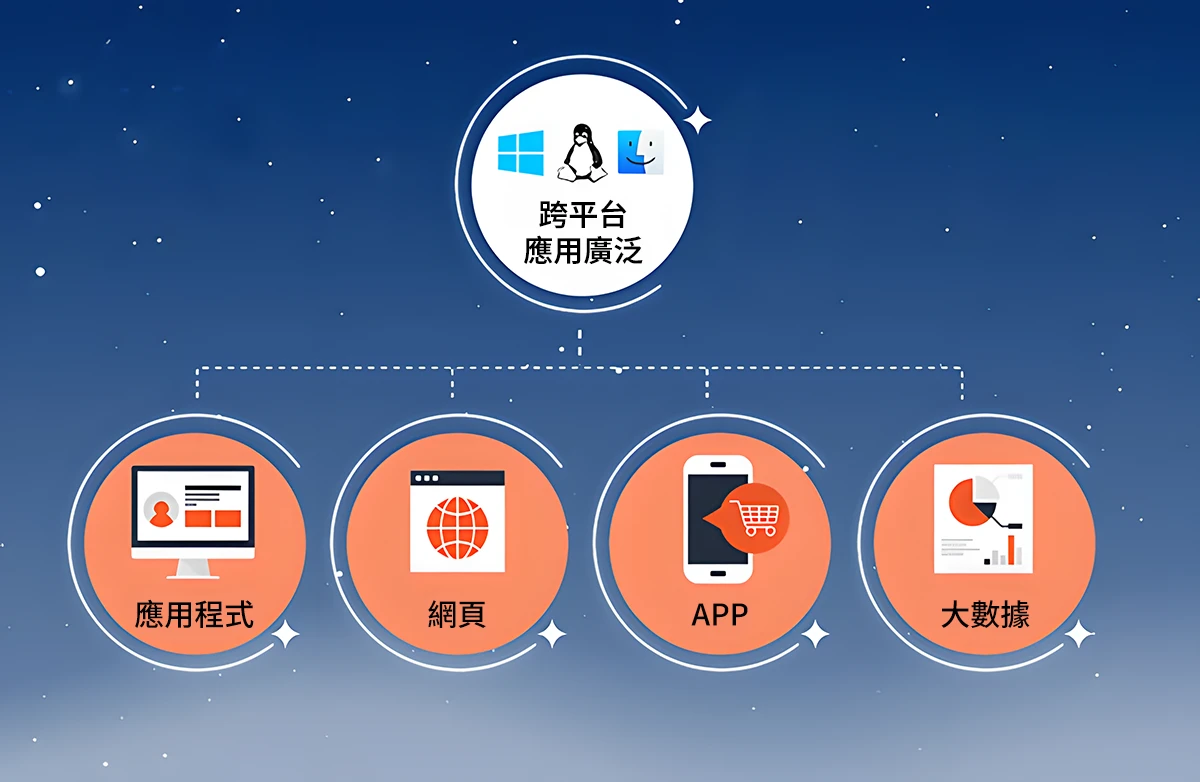 Java 一直是應用廣泛的電腦程式設計語言,在 TIOBE 排行榜長年保持在前三名,具跨平台、物件導向等特性。自從被資料庫大廠 Oracle 收購後,開發了更多新的 API 與規格來和資料庫做連線存取,目前許多大型廠商後台程式都使用 Java。其職缺超多,薪資平均水準高。