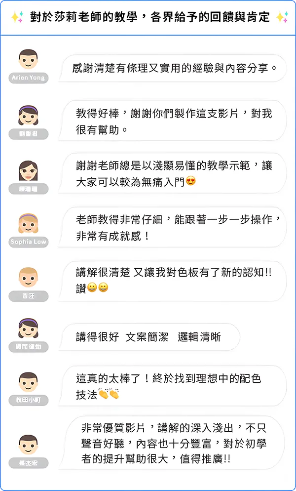莎莉 Sally 是平面設計與網頁設計的專職接案工作者,同時經營 Youtube 頻道-「說哈設計」,頻道內容將過去二十年的經驗,包含設計軟體、藝術史、繪畫等,以簡單易懂的方式分享給大家,累積突破百萬次點閱,透過頻道的影響力,讓更多人接觸與認識藝術和設計!
