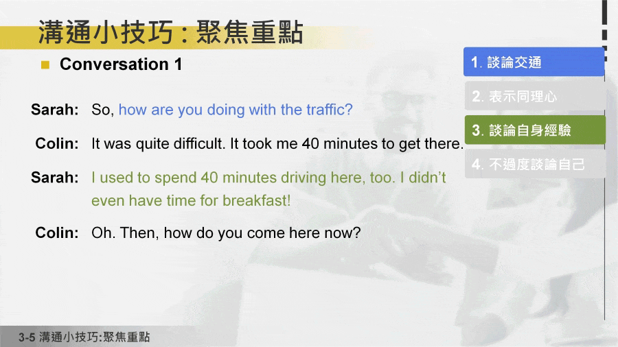 如果你對職場上的溝通不熟悉,怕不小心誤觸對發的地雷,或是因為不懂掌握分寸而得罪對方,課程也能讓你更了解英語使用者的說話習慣與邏輯,讓你與對方的溝通更順暢。