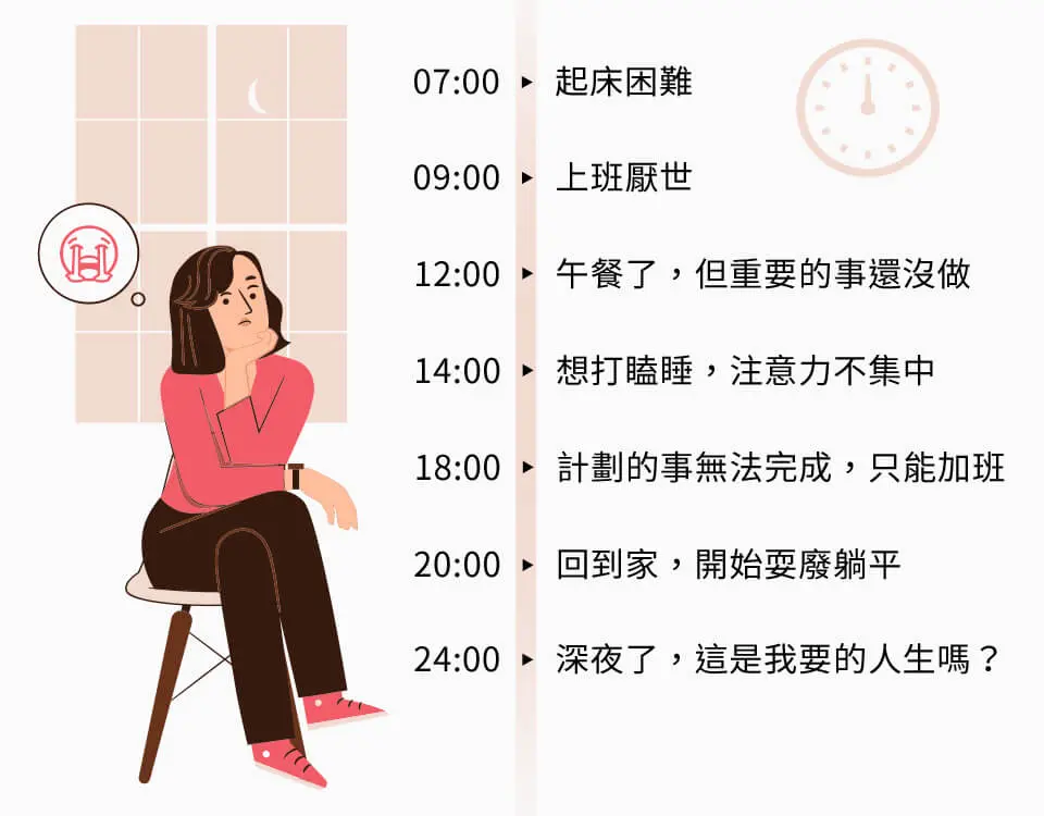 每天都疲憊不堪,忽略了健康,也沒有精力思考自己的長遠發展,好不容易空閒下來,卻發現自己除了忙碌的工作外沒有人生目標,只能宅在家無所事事或沉迷娛樂。