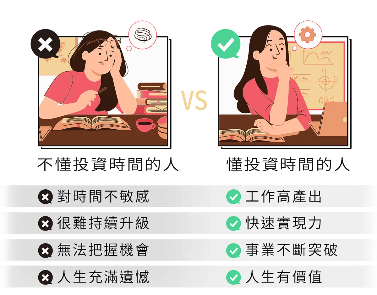 不懂投資時間的人:對時間不敏感,時常浪費時間,很難做到持續升級自己,每當機會來臨時,也因為沒準備好而錯過,人生總是充滿懊悔