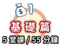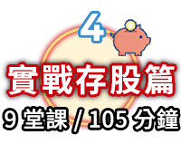 本課程分為基礎篇、必懂財務指標篇、必懂技術指標篇、實戰存股篇與實戰ETF篇,共5大篇章!