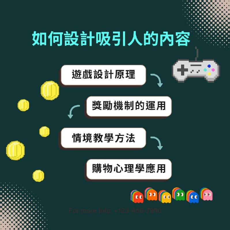 此外,課程將教授您如何設計吸引人的內容,包括遊戲設計原理、獎勵機制的運用、情境教學方法以及購物心理學的應用,讓您的行銷活動充滿創意和樂趣。