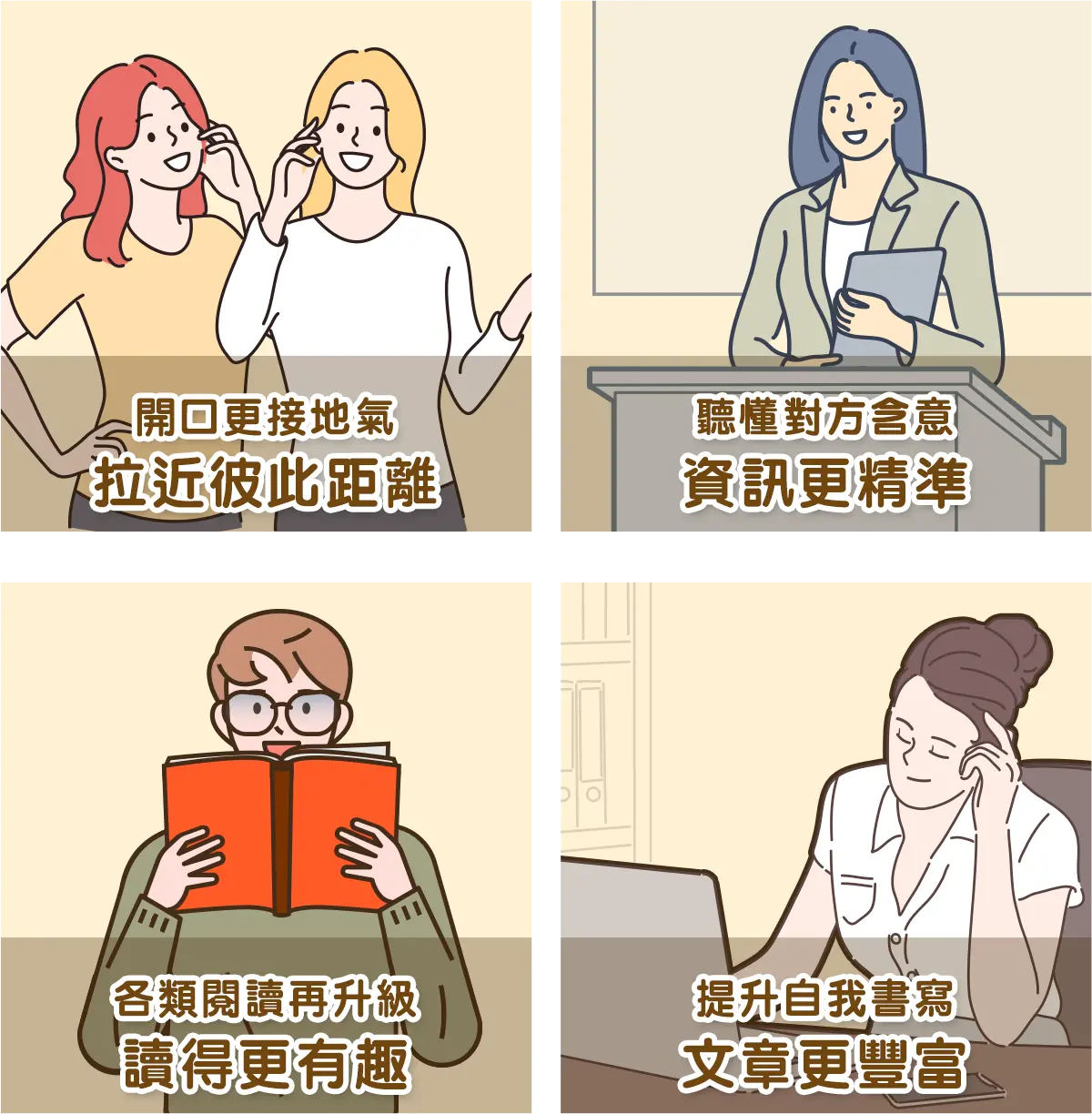 更是英文輸入與輸出的最佳搭檔,讓你在表達上更清晰,接收訊息上更精準。也會讓你的聽說讀寫,更接地氣。