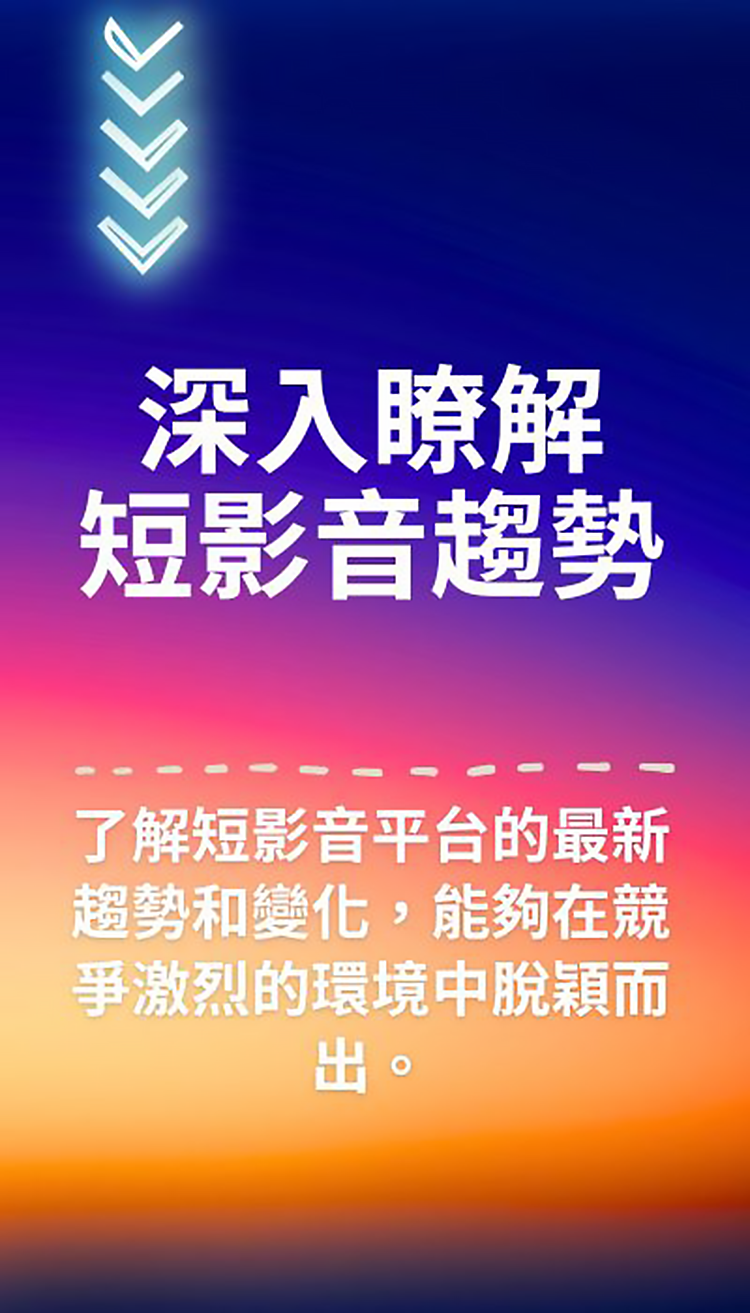 即使你已經在其他平台上有了一些經驗,本課程仍將為你揭示短影音的獨特挑戰和機會。透過深入的案例分析和實踐指導,你將學會如何調整現有內容,以適應短影音平台的節奏和特點,進一步擴展你的受眾和影響力。