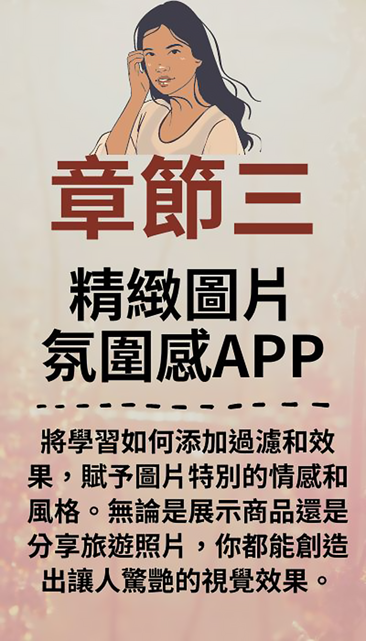 本課程壽司老師會跟大家深入了解與說明一系列優質APP使用,讓你的內容充滿創意,引人入勝!