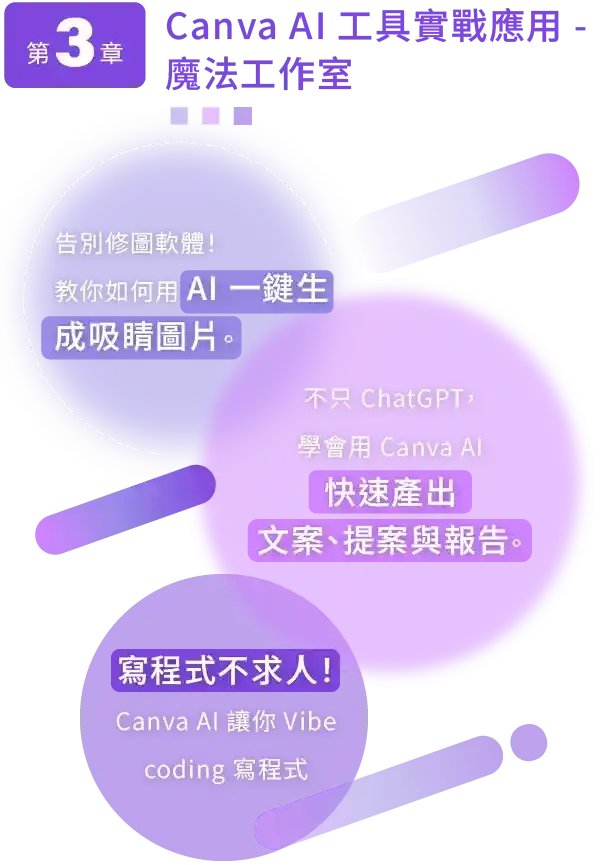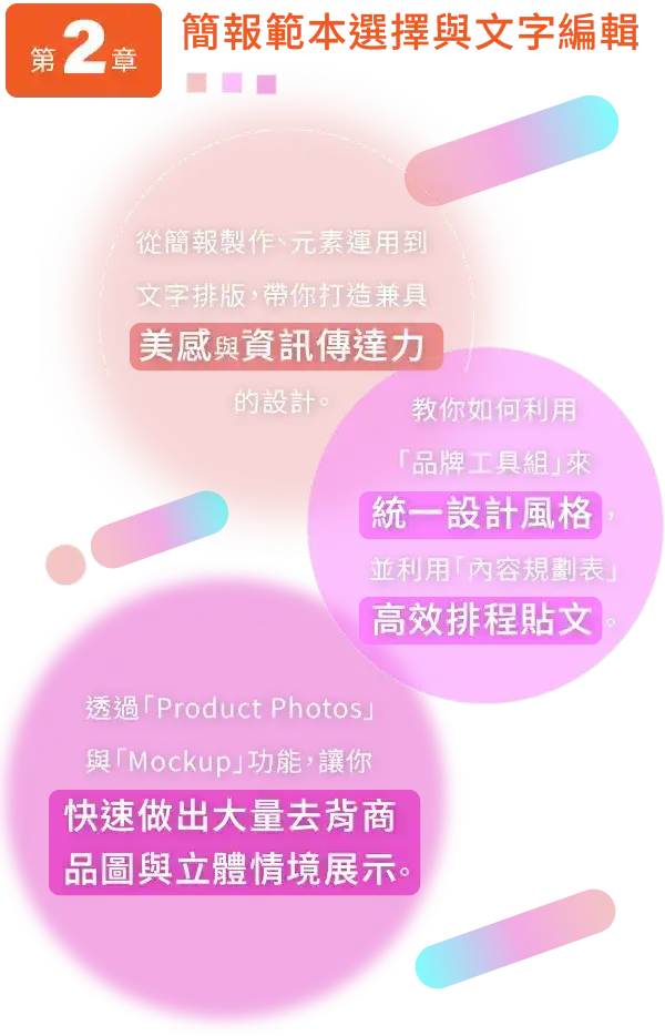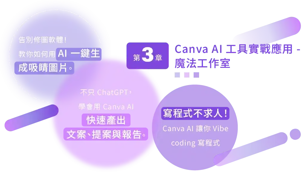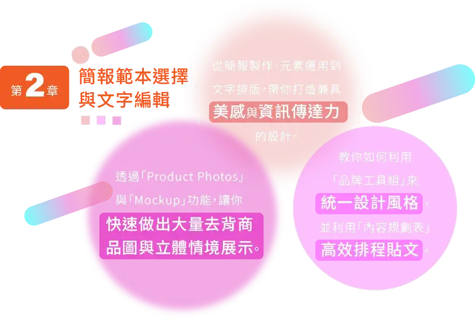 從入門到產出,全面掌握 Canva:介面操作、素材製作、版面美學再到AI神助攻,帶你一步步提升設計力,快速打造吸睛又專業的作品。