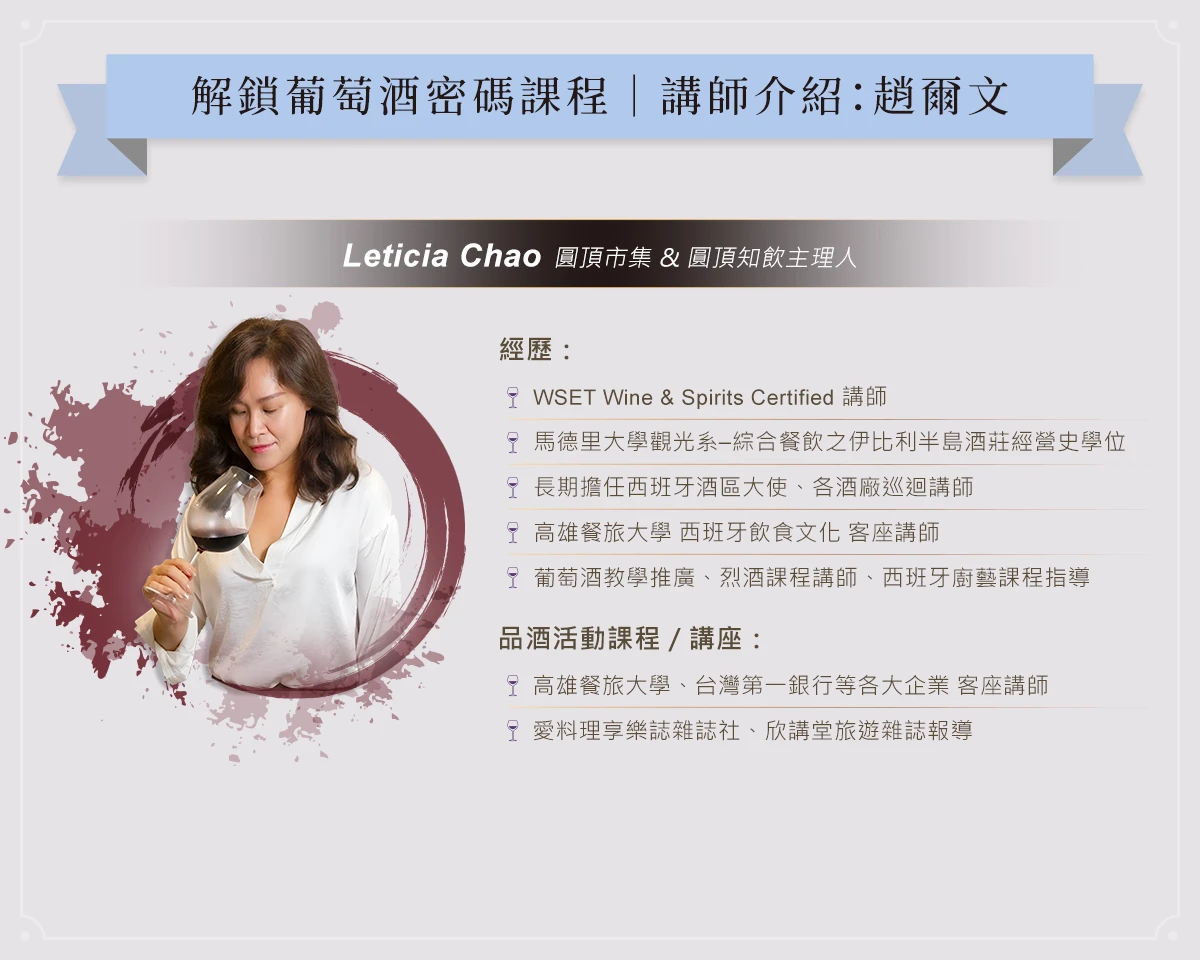 如果你曾有過「我想懂一點葡萄酒,但好像有點難」這樣的念頭,那我很期待在課堂裡見到你,一起慢慢地,把這個世界打開。