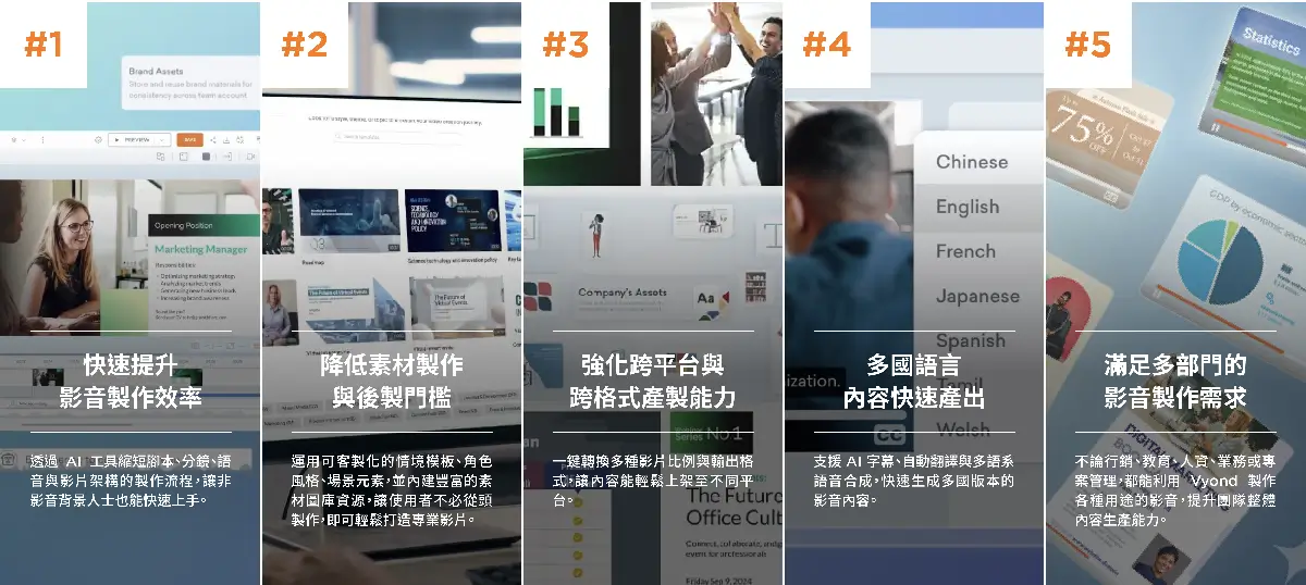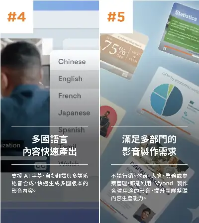 A:支援。Vyond 支援包含中文在內的 80 多國語音生成 ,且最新的 AI 字幕功能也能精準辨識語音。