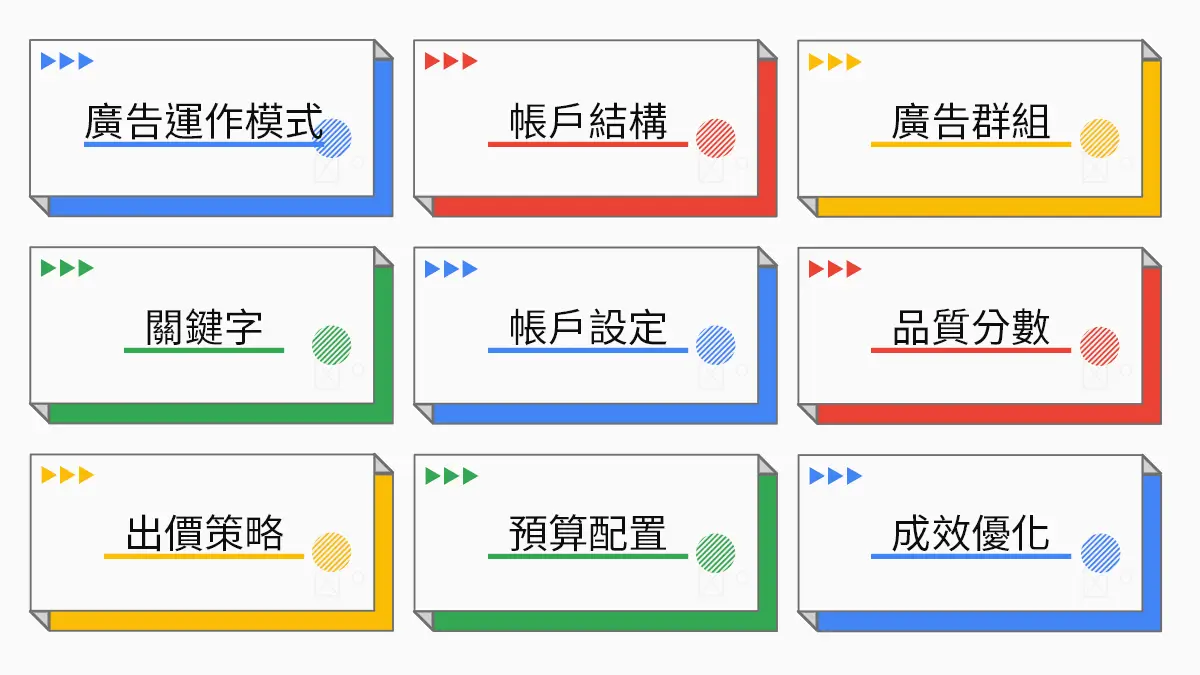 在關鍵單元中,你會學到如何進行關鍵字研究,判斷哪些搜尋字詞值得投放、哪些應該排除,並正確使用比對類型,讓廣告出現在對的人面前。同時,你也會理解品質分數、出價策略與預算配置之間的關聯,知道成效卡關時該從哪裡調整。