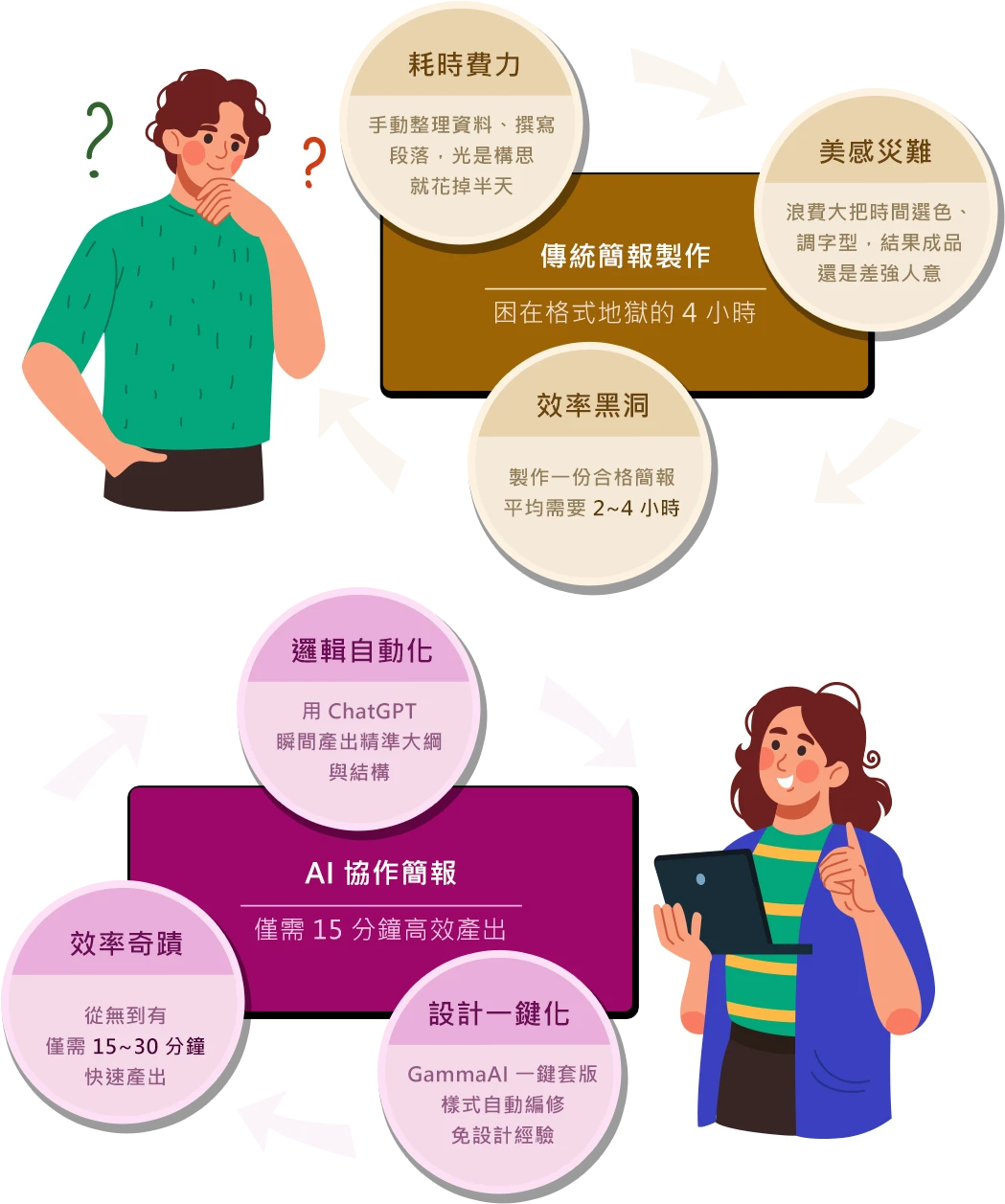 光是挑選字型、調整配色、重新排版,內容都還沒完成,時間就已消耗所剩無幾?